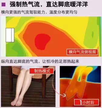 它具有强劲下送风形式,使热风不再浮于半空,令暖气可以直达足底。