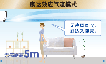 大金潜心研发,研制出全新康达效应导流板,对导流角度反复试验求证,以使其能够将气流向更高、更远的地方引导,创造更广更舒适的5m无感气流区域,解决了传统空调冷气直吹人体的困扰,舒适更健康~