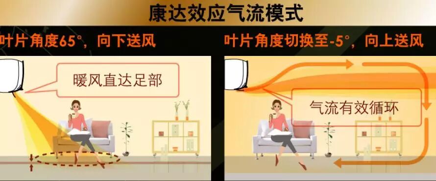 达到设定温度后即利用康达效应气流向上送风,加强室内暖气流循环,提高制热舒适度。