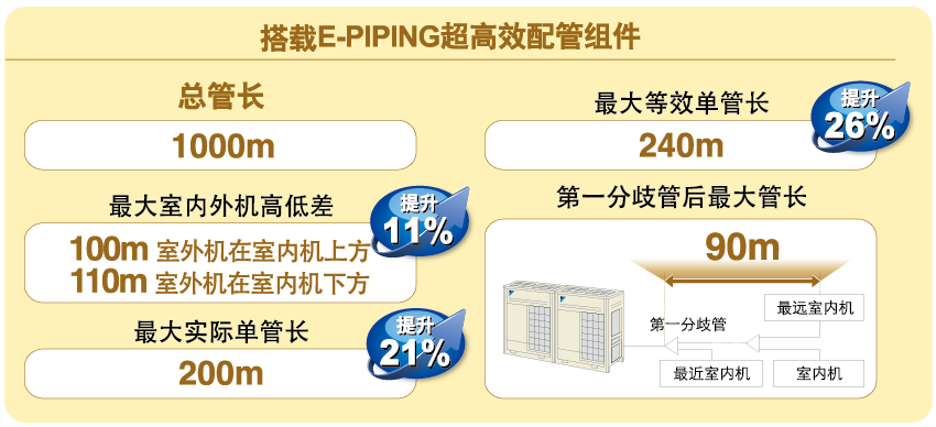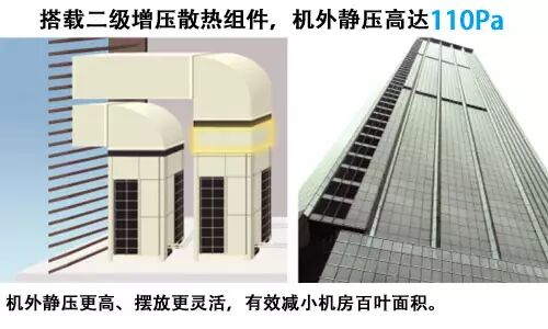 突破多联式中央空调系统的管长极限,解决百米高层建筑的室外机摆放问题。
