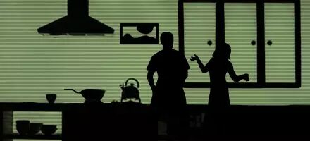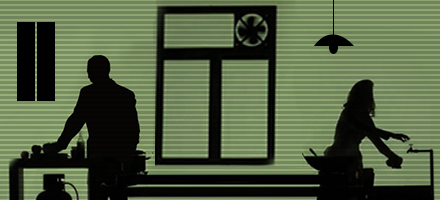 传统的老式厨房,灯光昏暗;大锅灶台,烟火升腾,高温伴随着烟熏。