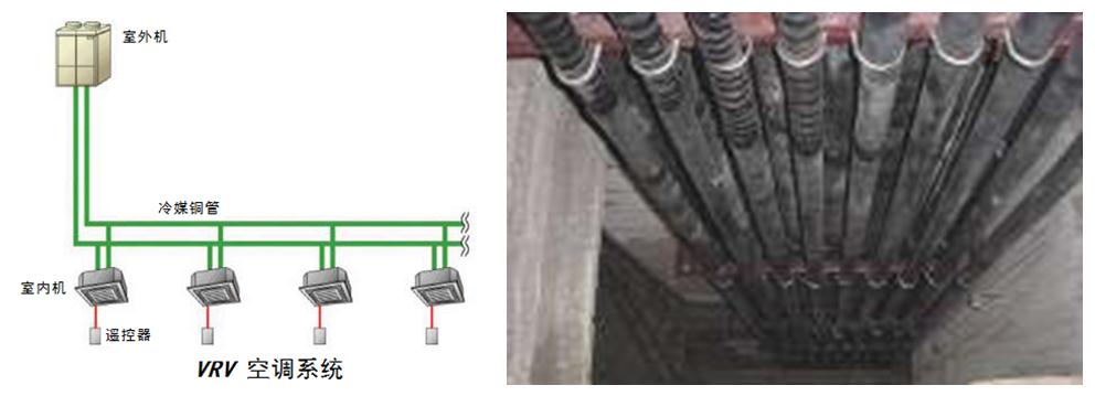 室内、外机通过冷媒铜管连接,占用管井空间小,管路排布施工简便快捷、施工周期短。且使用冷媒铜管的VRV 中央空调系统不存在管路漏水隐患,避免了因系统漏水对历史建筑外观及内部文物的损坏。