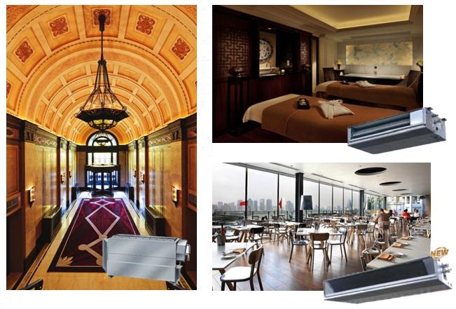 对于格局重新设计办公室、工作间等公共区域,为配合设计师不同的内装吊顶造型,采用了可连接风管的“中静压风管式室内机”。