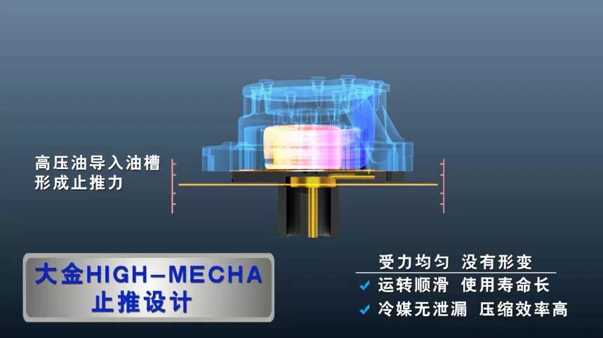 正是因为采用了这一技术,大金压缩机在运转时,动/静涡盘几乎没有任何形变,从而可以防止因形变产生的冷媒泄露、效率降低,同时亦可最大限度提升压缩机运转稳定性。