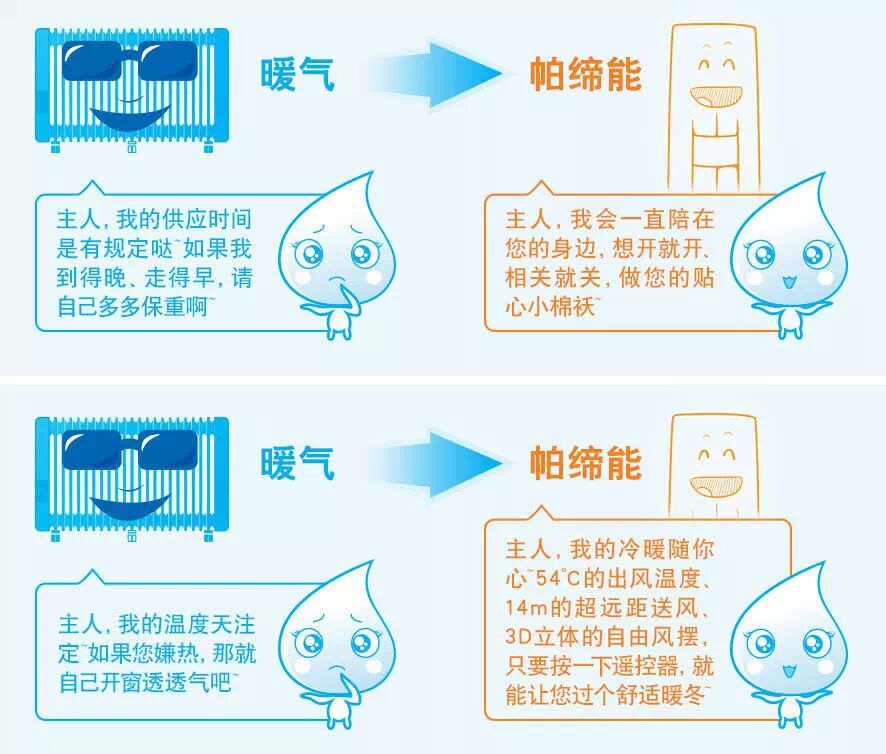 我的水平与垂直活叶就能上、下、左、右自由摆动摆动,使气流有效循环起来,全面覆盖房间每一个角落,走到哪都暖暖哒~