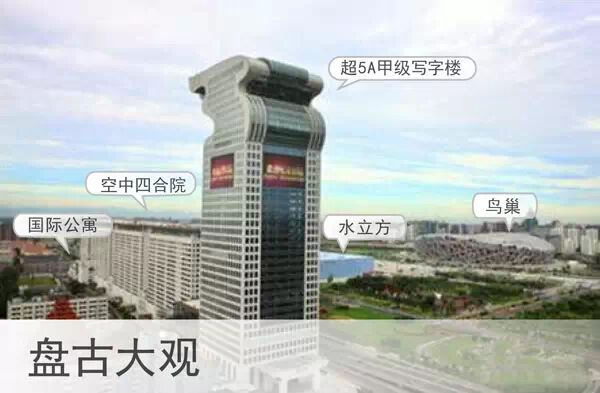 盘古大观综合体包括1栋超5A甲级写字楼,3栋国际公寓,1栋七星国际酒店,1条空中连廊,12座空中四合院。