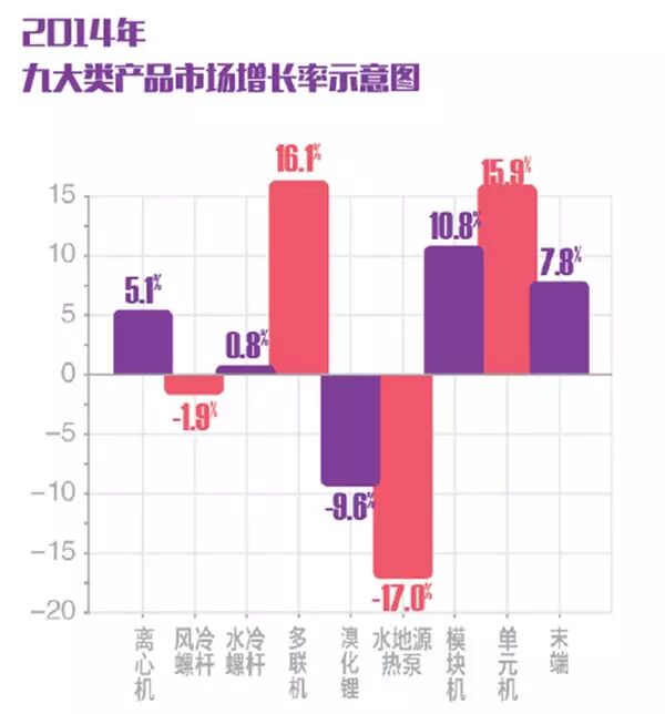 多联机产品市场增长率在九大类空调产品中一枝独秀,高达16.1%,雄踞第一!