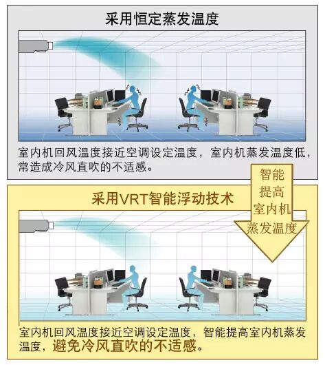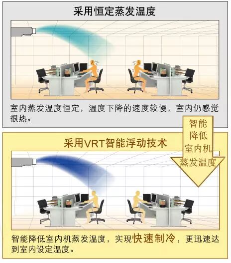 大金采用VRT技术,弥补了普通VRF空调“出风温度较低”的缺点,出风温度更舒适。