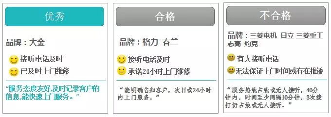 在众多空调品牌中,大金的表现脱颖而出,获得了唯一的“优秀”评价。不仅服务态度友好,记录信息准确,并且在24小时内就前往“中国质量万里行”工作人员“杜撰”的地址进行上门服务。