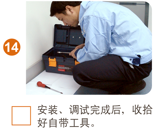 好空调离不开专业的安装,空调能否达到最佳状态,必须通过专业的安装规范来保证,请看咱们的安装前后流程