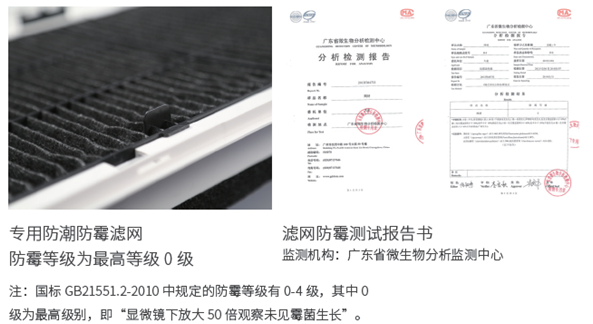 室内机的干燥离不开高效防霉滤网,大金卫浴用室内机采用了专业防潮防霉滤网,防霉等级为最高级0级。