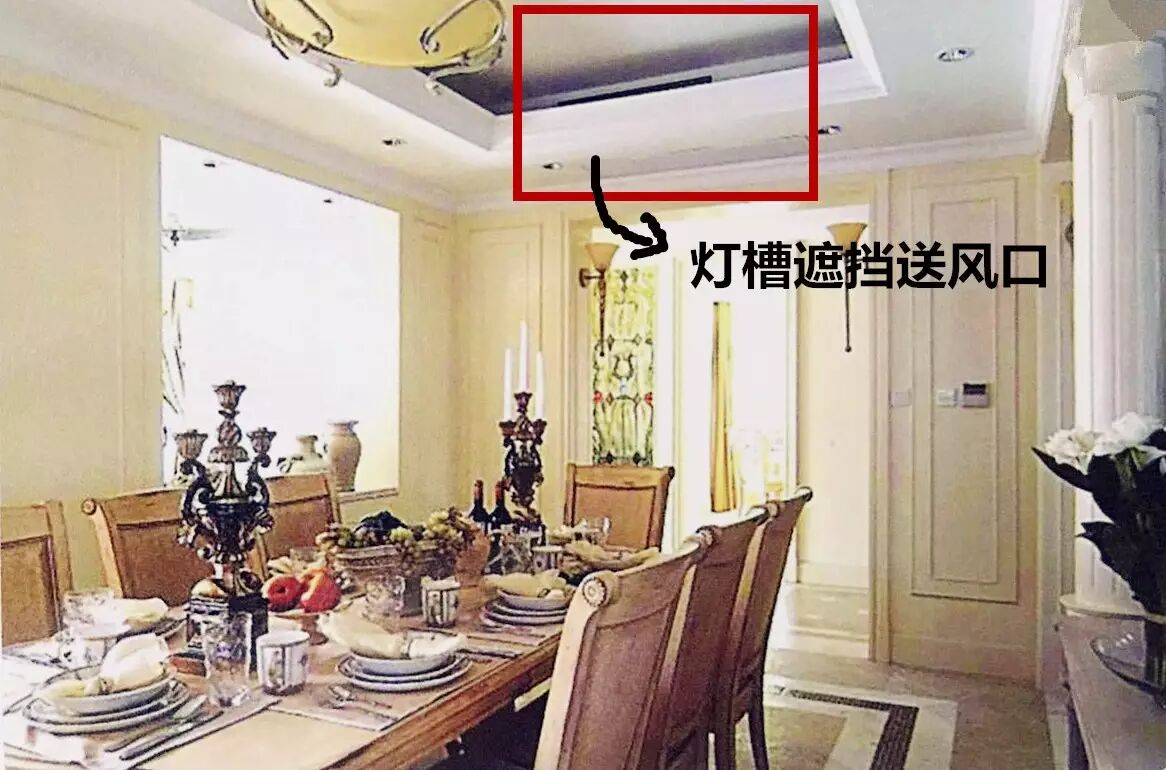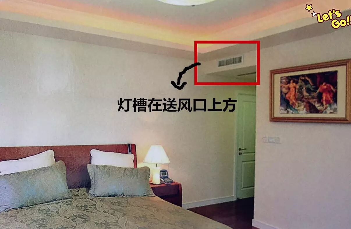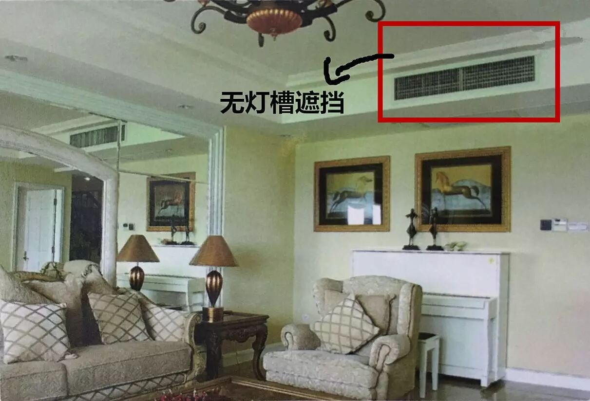 家庭中的灯光设计师营造氛围的关键因素,但如果在空调出风口处设计太宽的灯槽,凸出的灯槽将阻碍空调气流向下流动。