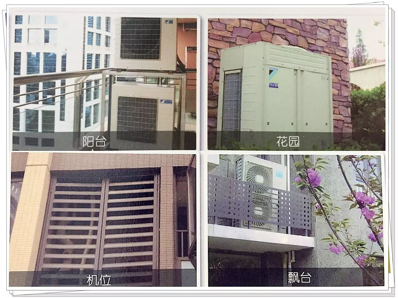 室外机安装位置需考虑噪音的影响,尽可能远离对噪音敏感的房间,如卧室、书房。一般室外机安装位置可选择在阳台、飘窗、花园等位置。室外机安装前,需现场确认安装尺寸。确保有足够散热及安装空间。