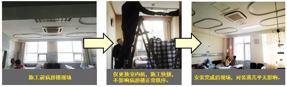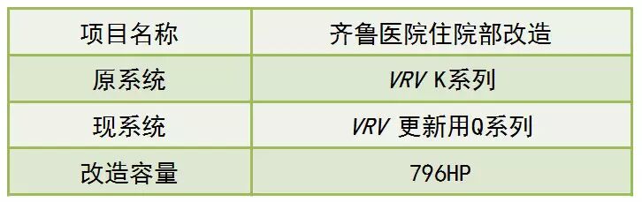 由于医院规模加大,接待患者较多,院方不希望因空调改造暂停医院的正常运营,造成患者的困扰,同时综合考虑到对内装等的影响,最终选择了大金VRV 更新用Q系列.