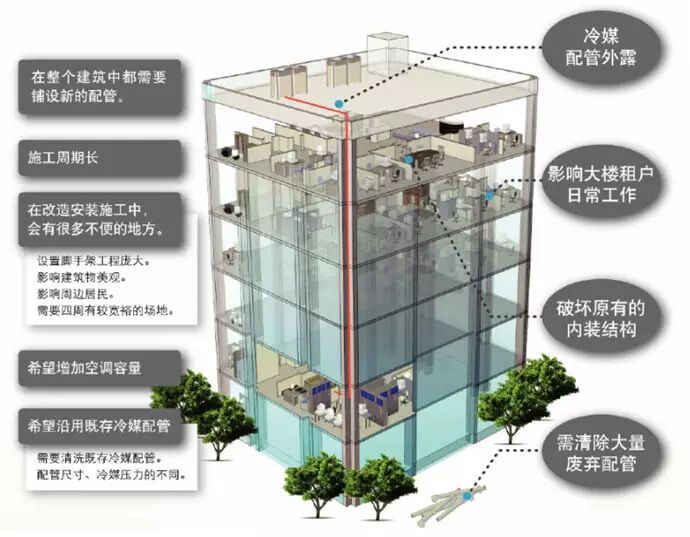 针对改造的“工期”“资金”“影响”三大难题,大金VRV 更新用Q系列利用先进的技术,解决用户对空调改造的担忧。