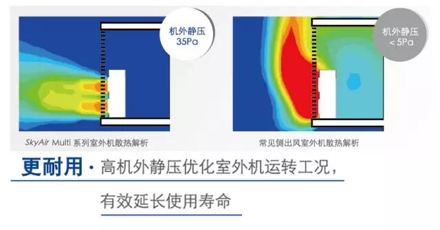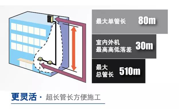SkyAir Multi 系列不仅机身小巧,可以根据业主需要隐藏在店铺招牌后方、屋顶或建筑周边绿化中,同时还辅以了长配管设计和高机外静压,相较普通分体式一拖一空调,连接长配管时空调能力更足,散热能力更佳,具有更好的空调使用效果。
