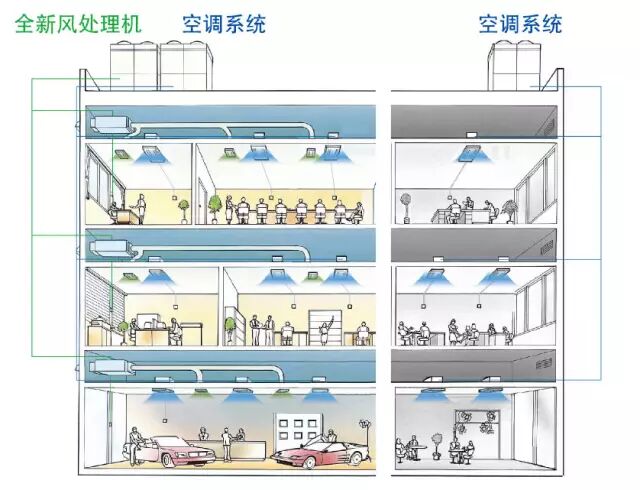 繁华都市全玻璃幕墙的密闭办公大楼、人员密集的室内商用空间,随着人们门窗紧闭,空调的长时间开启,室内空气品质也随之不断下降,CO2浓度越来越高,严重影响室内舒适感受,这就是为什么引入室外新风变得那么重要。