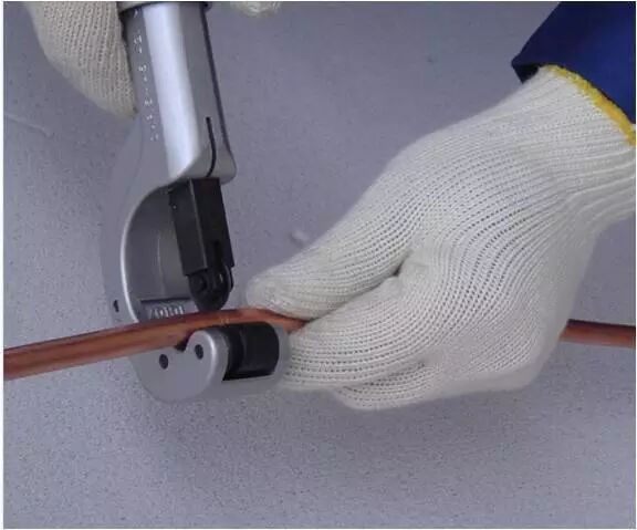 2、用专用工具加工冷媒配管,防止切割时产生大量的毛刺和铜屑,减少冷媒管道的变形。