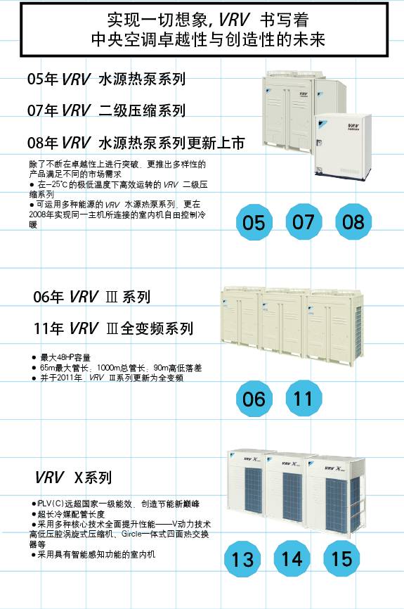 自06年有统计以来,大金VRV 中央空调系统长期占据中国多联机中央空调市场占有率NO.1的地位。今天,就让我们来一起简单了解一下VRV 的发展历程。