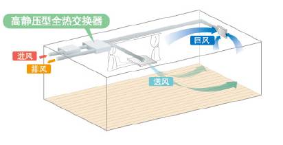 搭配高静压型全热交换器使用,最大静压可达200Pa,保持充足送风量