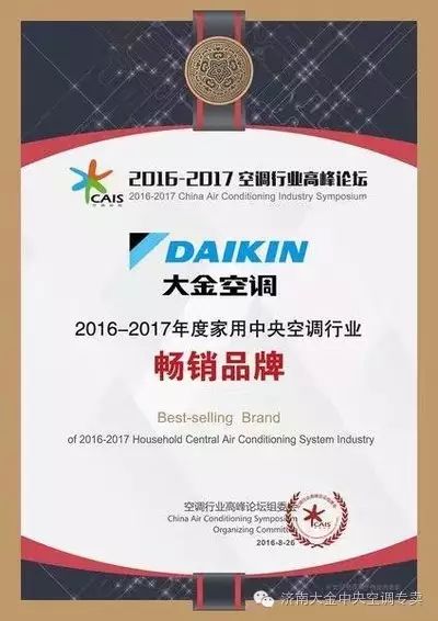 上海2016年9月13日电 /美通社/ -- 8月26日,2016-2017中国空调行业高峰论坛在北京召开,对2016冷年以及2017冷年空调行业分别进行了盘点和发展趋势分析。本次会议由中国家电网主办、中国家用电器协会、国家信息中心、中怡康等权威机构专家一同出席。大金空调获评2016-2017年度家用中央空调行业畅销品牌,再次展现了大金作为国际品牌的雄厚实力与品牌魅力。